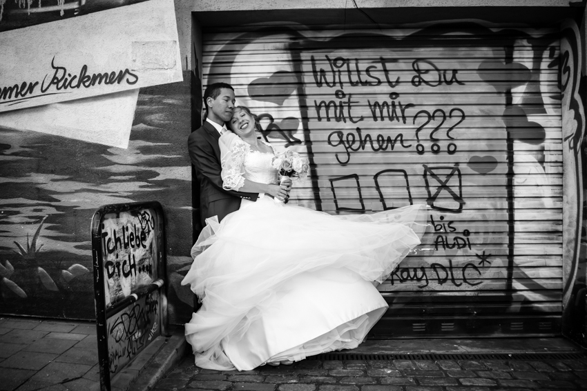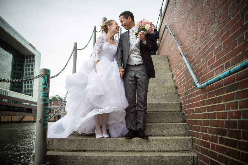 Ein Shooting – kurz und knapp – in den schönsten Ecken Hamburgs von den Deichtorhallen bis zur Speicherstadt. Und ein Paar, das so verliebt war, dass die Minusgrade ihrem Lächeln nichts anhaben konnten.