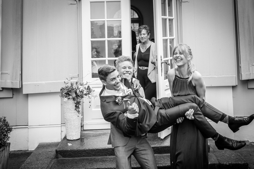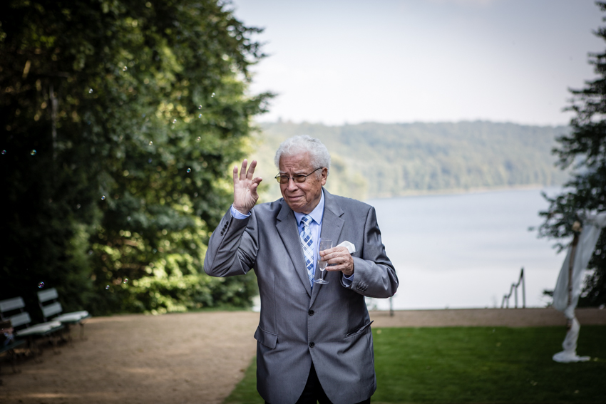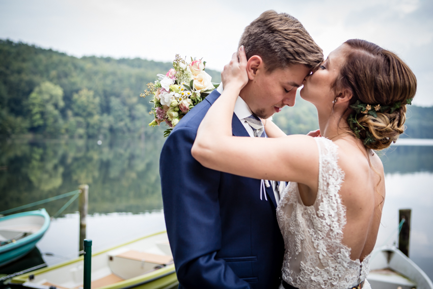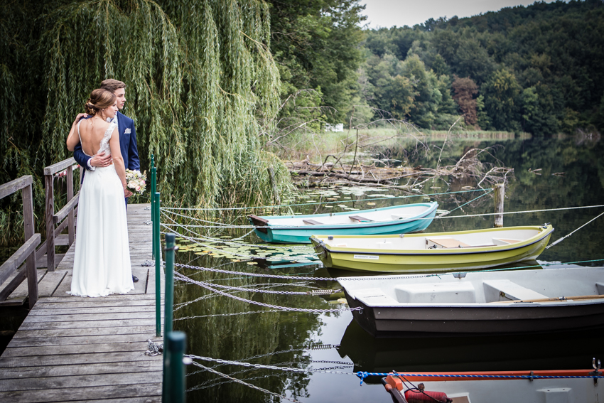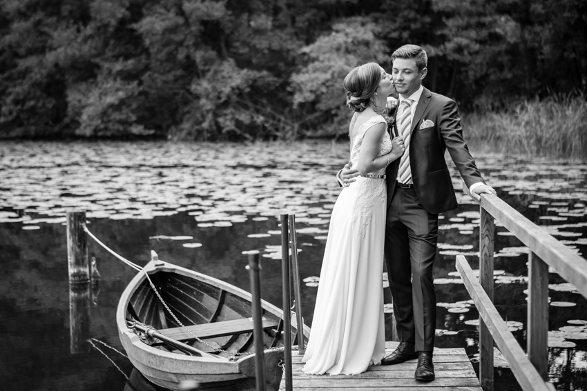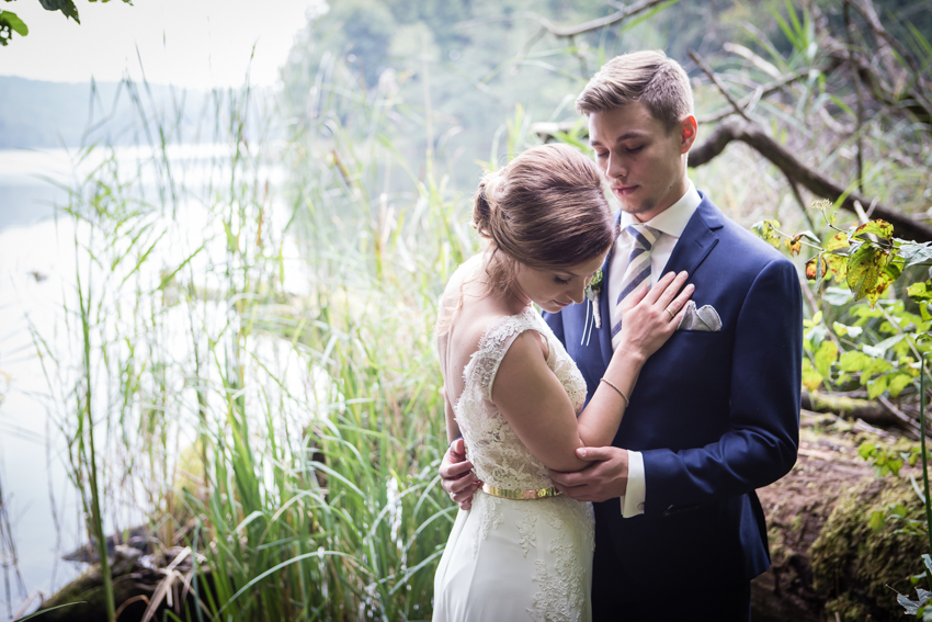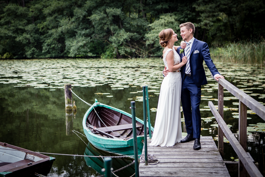 Ein wundervolles Ambiente für ein wundervolles Paar – das Jagdschlößchen am Ukleisee und das Forsthaus Waldhusen. Wenn man schließlich gemeinsam mit dem Brautpaar über Stock und Stein zum Bootsanlieger klettert, um die besten Fotos zu bekommen, dann kann es einfach nur was werden. Ein Tag – von der ersten Haarspraywolke bis zum letzten Jägermeister – absolut gelungen.