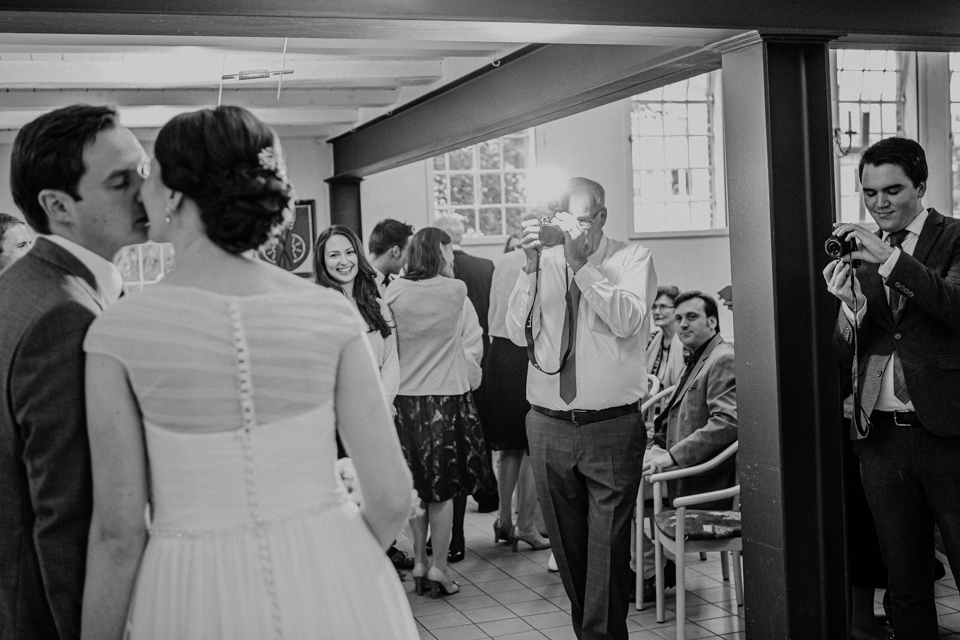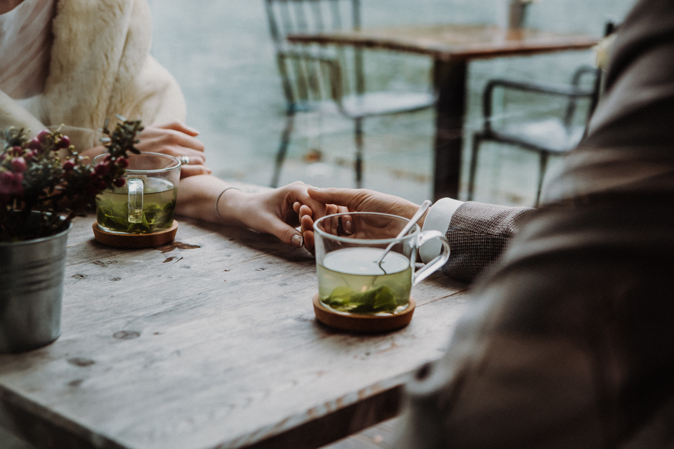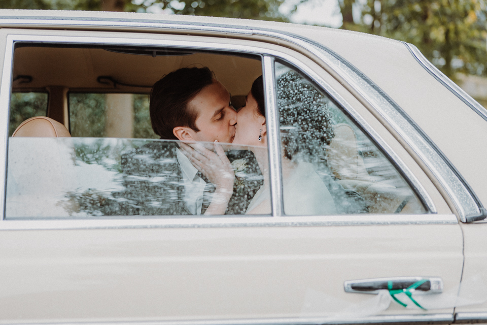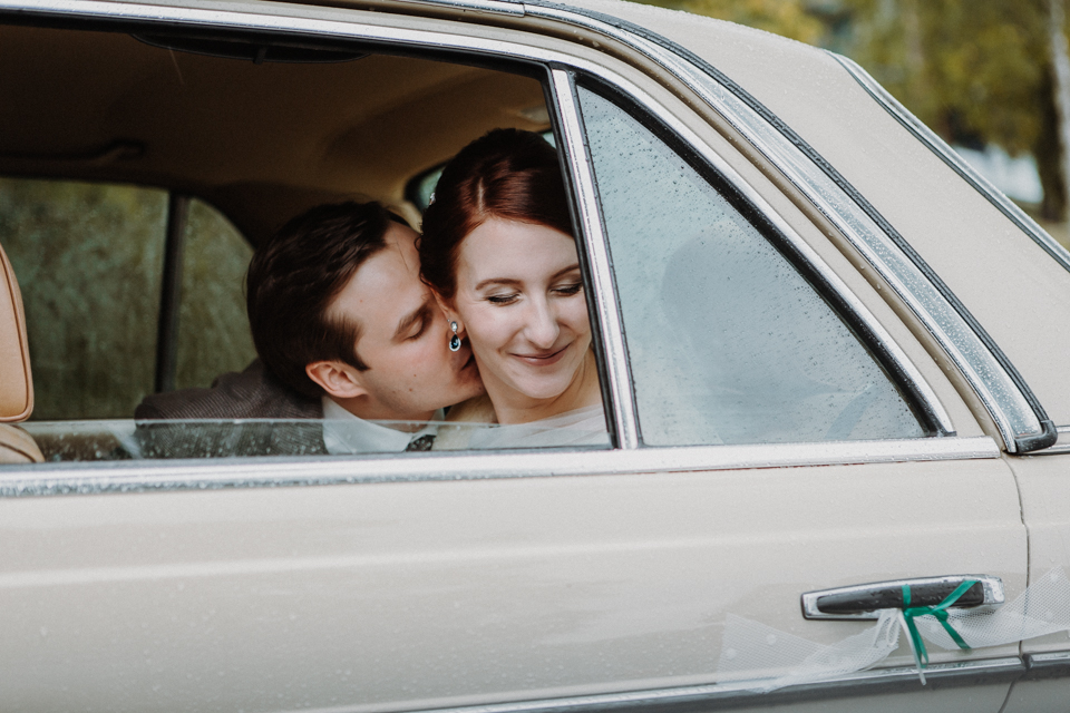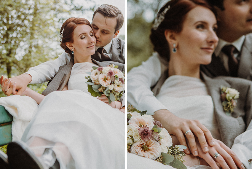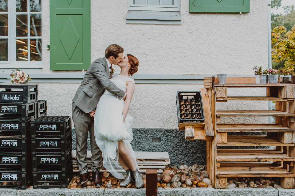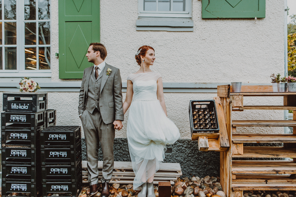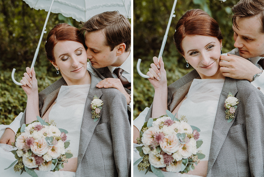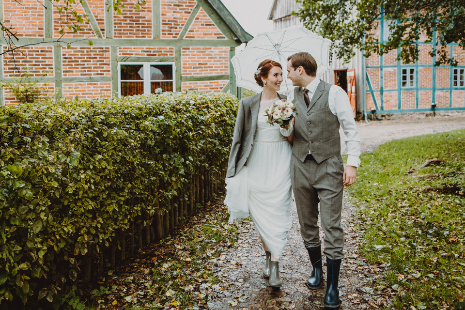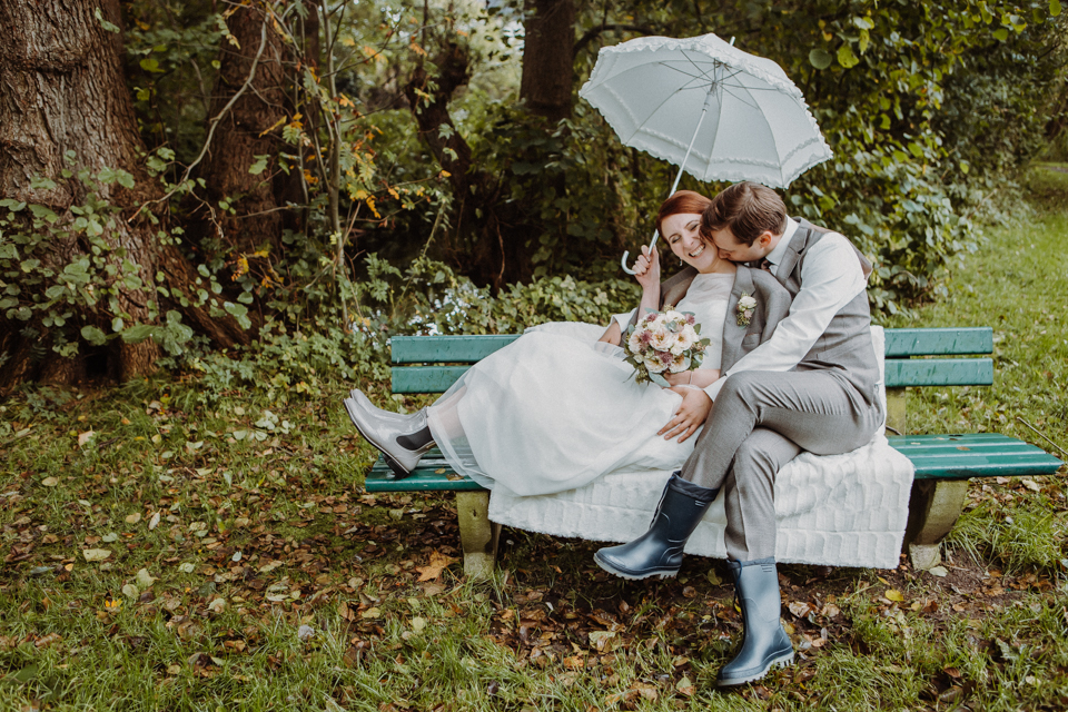 Nicht eine Sonnensekunde an diesem Tag. Aber wir waren vorbereitet. Mit Gummistiefeln, Regenschirm und einem trotz des Wetters strahlenden Paar sind Bilder entstanden, die gar keine Sonne vermissen lassen.